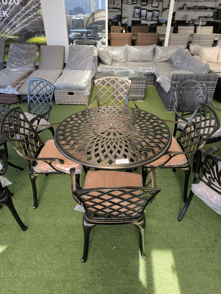 Alumínium asztal 105x105 +szék bronz + párna