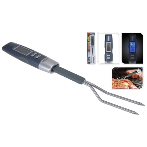 Húshőmérő Beállíthatjuk a sütni kívánt hús hőmérsékletét, hogy meddig célszerű még sütnünk. kék LED -világítással 2 db AAA elemmel működik különböző sütési fokozat közül választhatunk