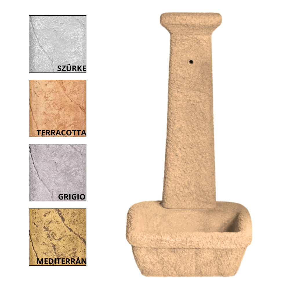 A Caorle kerti kút nem csupán egy látványelem – a klasszikus formavilág és a modern alapanyagok találkozása révén egy olyan terméket kapsz, amely hosszú távon is megőrzi szépségét és funkcionalitását. Különösen ajánlott olyan kertekbe, ahol fontos a részletek igényessége, és ahol a stílusos megjelenés kéz a kézben jár a praktikum elvárásával. Robosztus kerti kút kifolyóval. Szabadon álló, bekötése a kútoszlop alján történik. Méret: 116x59x52 cm Súly: 124 kg Fagyállóság: Fagyálló Felület: Időjárás és kopásálló  Gyártó: FabroStone Az ár nem tartalmazza a csapot, kérjük a termék rendelésekor figyelembe venni!