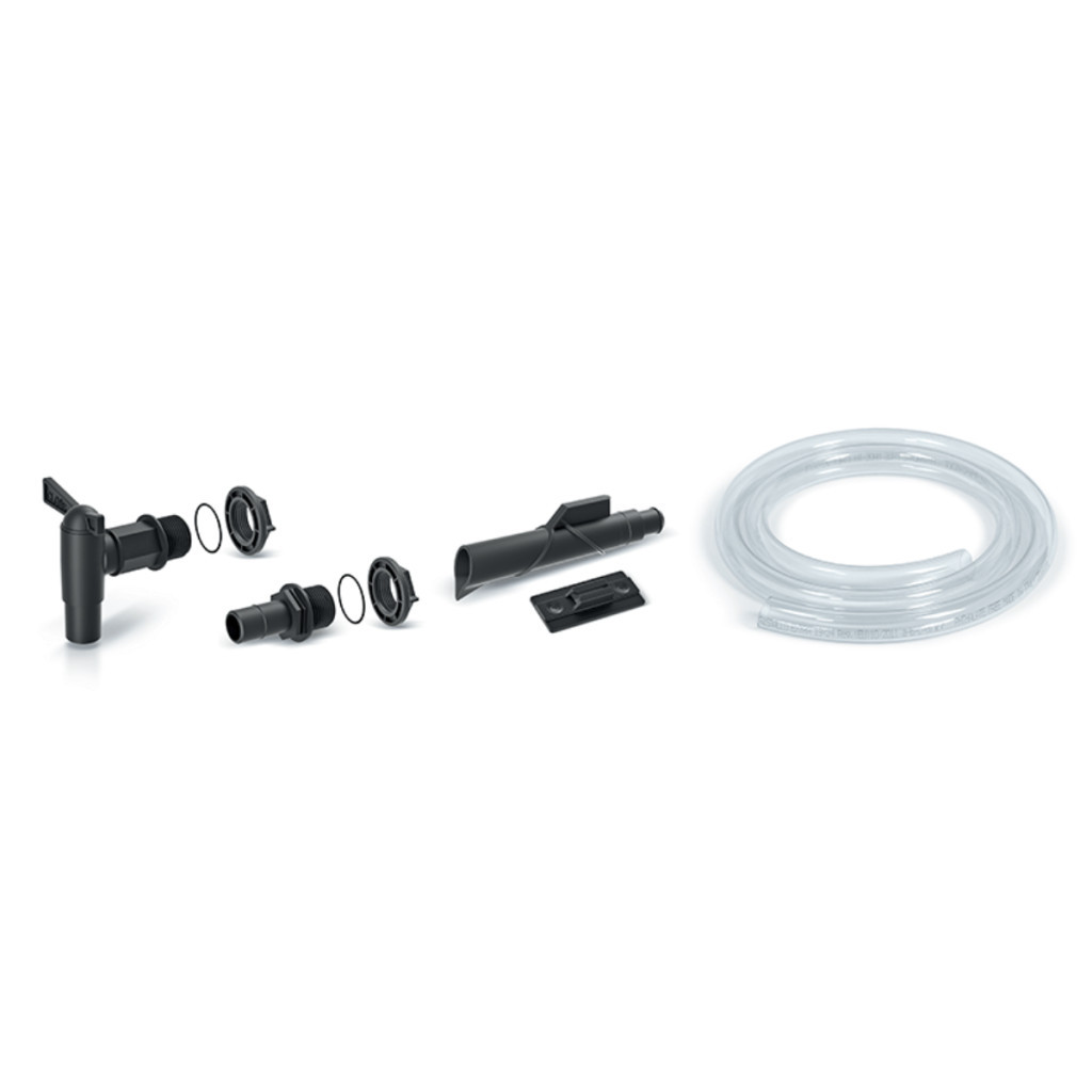 Esővízgyűjtő bekötéséhez szükséges szett hosszú tömlővel.   Tulajdonságok: Anyaga: műanyag Hosszúság: 40  mm Szélesség:  300 mm Magasság:  370 mm