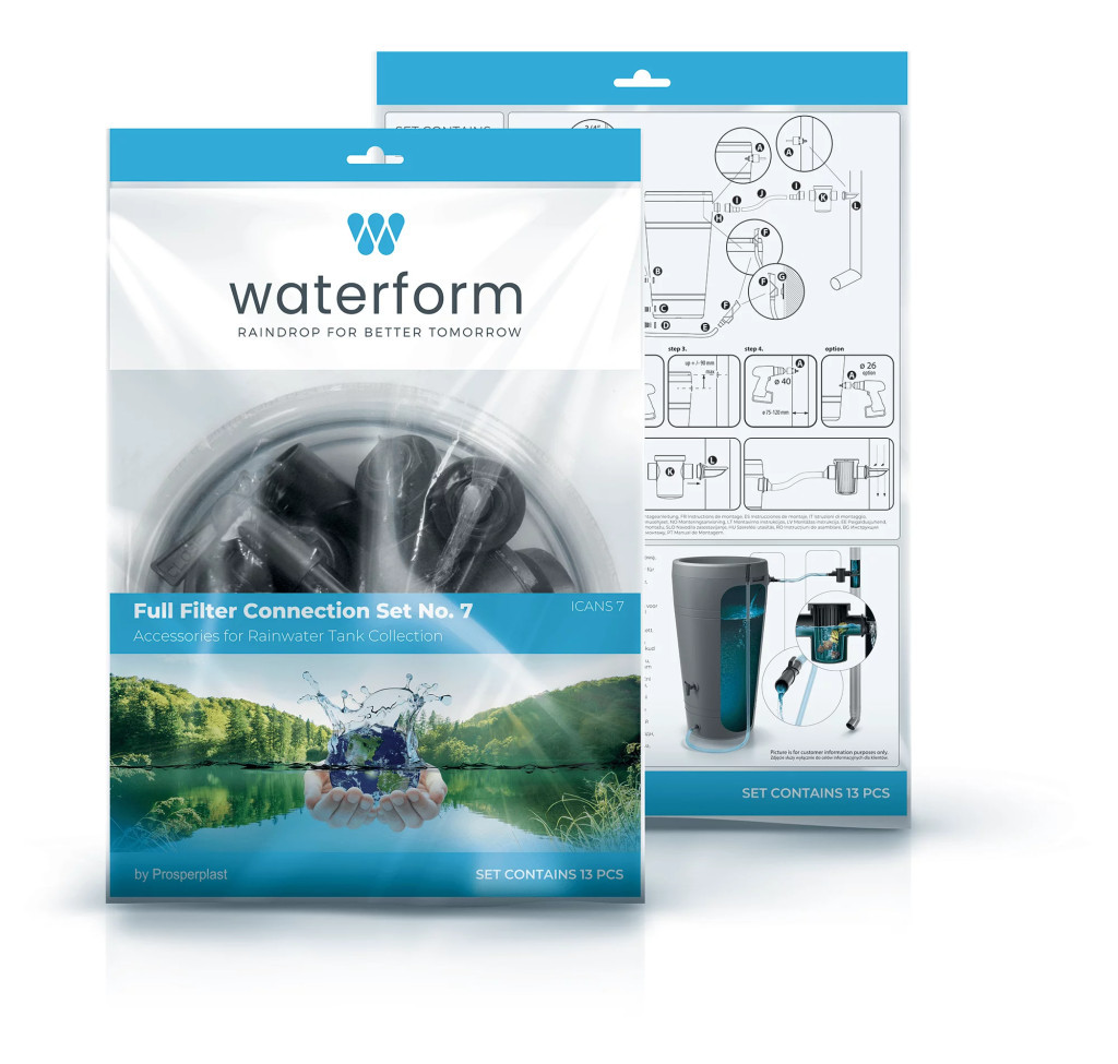 Az esővíz gyűjtő bekötéséhez alkalmazható kiegészítő készlet.