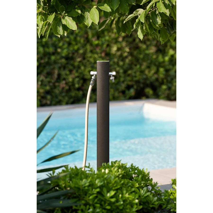 Colortap Kerti kút TOTEM 407 – Matt fekete, 2 db csappal, flexibilis bekötőcsővel, tömlőtartóval