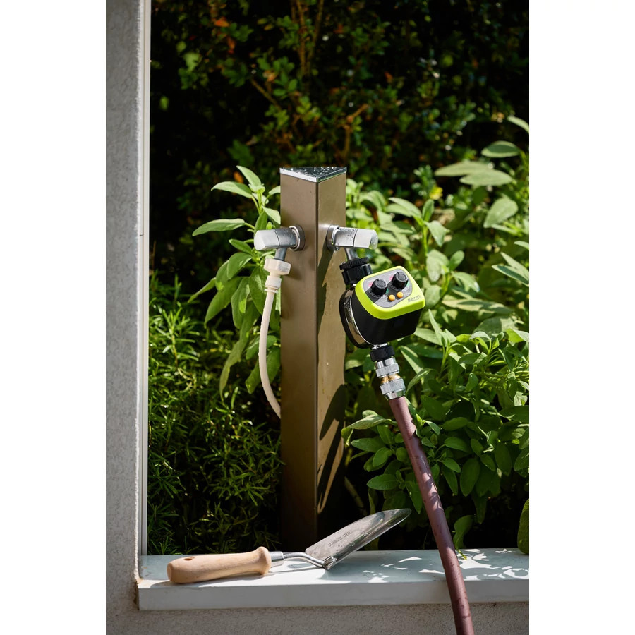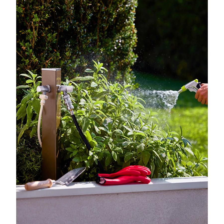 A modell egyik legnagyobb előnye a dupla vízvételi lehetőség. A két sárgaréz csap lehetővé teszi, hogy az egyik csapon folyamatosan csatlakoztatva maradjon a locsolótömlő vagy az öntözőrendszer, míg a másik csap szabadon használható vödrök megtöltésére vagy gyors kézmosásra.
