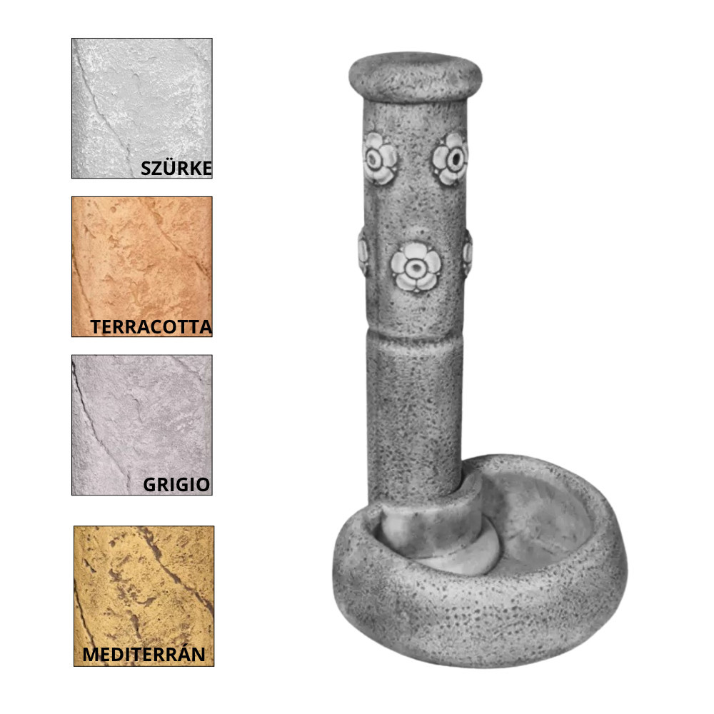 Mediterrán hangulatú kő kerti kút kifolyóval. Szabadon álló, bekötése a kútoszlop alján kialakított beépített 3/4" méretű horganyzott cső csatlakozásra történik. Fagyálló Mérete: 108x60x50 cm Súly: 110 kg Gyártó: FabroStone Az ár nem tartalmazza a csapot, kérjük a termék rendelésekor figyelembe venni!