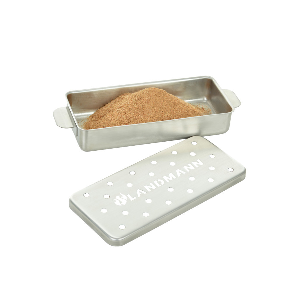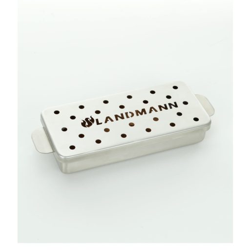 Rozsdamentes füstölő forgács tartó doboz a Landmann-tól. Alkalmazásával természetes és vegyszermentes módon ízesítheti grill ételeit! Rövid időre áztassa vízbe a Landmann füstölő forgácsot, töltse meg a dobozt a kívánt mennyiségű forgáccsal és helyezze a grill sütőterébe! Igazán különleges gasztro élményben lesz része! Alkalmazható faszén és gáz üzemű grillekhez egyaránt. Ürtartalom: 700 ml