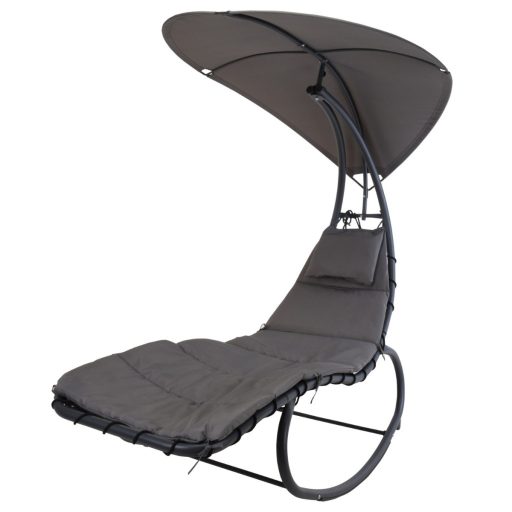 Hintaszék napellenzővel szürke Ergonomikus kerti hintaszék – tökéletes szabadtéri kikapcsolódáshoz. A fotel stílusa tökéletesen illeszkedik egy modern terasz vagy kert elrendezéséhez. A szék stabilitását és biztonságát egy megfelelően profilozott keretnek köszönheti, amely lehetővé teszi a ringatást. Felépítése nagyon erős és tartós az erős csöveknek köszönhetően. A tető, amely véd a nap és az UV sugárzás ellen, lehetővé teszi a pihenést és kellemes árnyékot biztosít. A csomag tartalmaz egy párnát, amely növeli a puhaság érzetét és kellemes pihenést biztosít.   Anyaga: poliészter, fém Színe: szürke Maximális terhelés: 110 kg A napernyő méretei: 165 x 116 cm A termék méretei: 183 x 178 x 76 cm