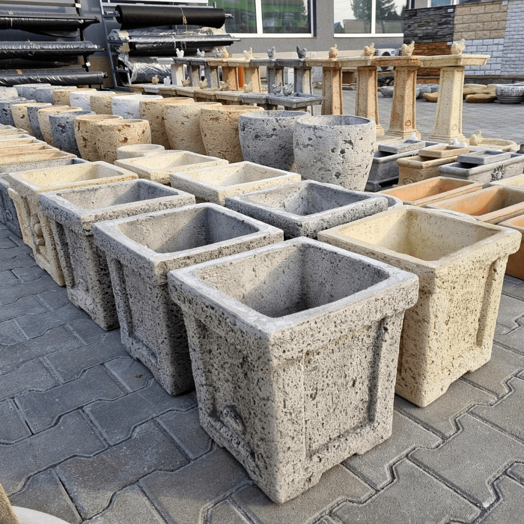 Télálló kerti váza kő hatású felületképzéssel.