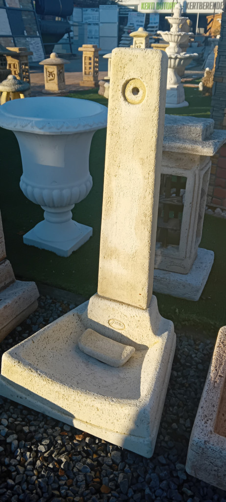 Az állókút különleges formájának és anyagának köszönhetően hosszú éveken át ékesítheti udvarát. A fehér cement és beton alapanyagoknak, illetve a speciális utólagos színezési eljárásnak köszönhetően a kínálatunkban megtalálható kerti álló és falikutak gondozásmentes, időjárás- és fagyálló termékek. A magasnyomású készülékkel történő tisztítás kárt tehet a színezésben, ezért alkalmazását kérjük kerülje.