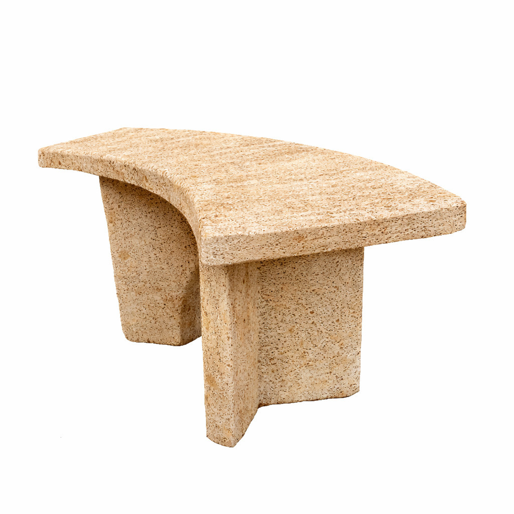 Önmagában vásárolható köríves ülőpad kő hatású felület képzéssel.