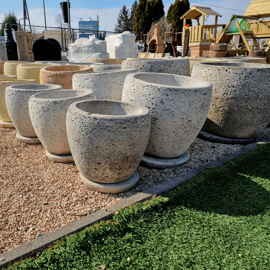 Kő hatású időjárásálló kerti kaspó alátéttel.