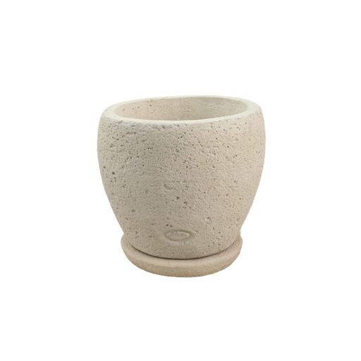 Kő hatású időjárásálló kerti kaspó alátéttel.