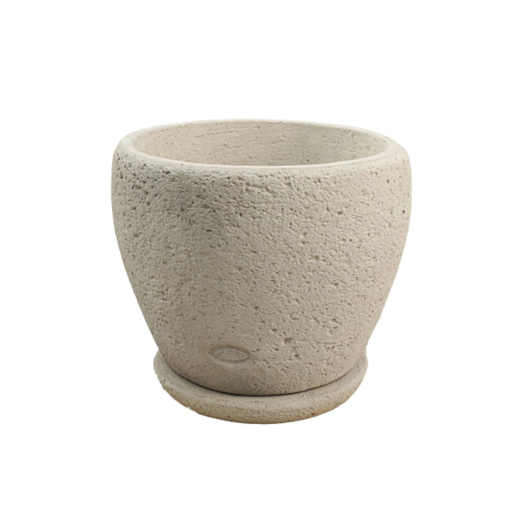 Kő hatású időjárásálló kerti kaspó alátéttel.