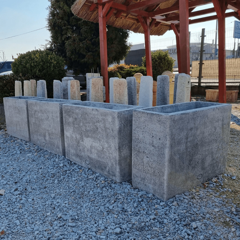 Kő hatású minimál stílusú időjárásálló magas kerti virágvályú.