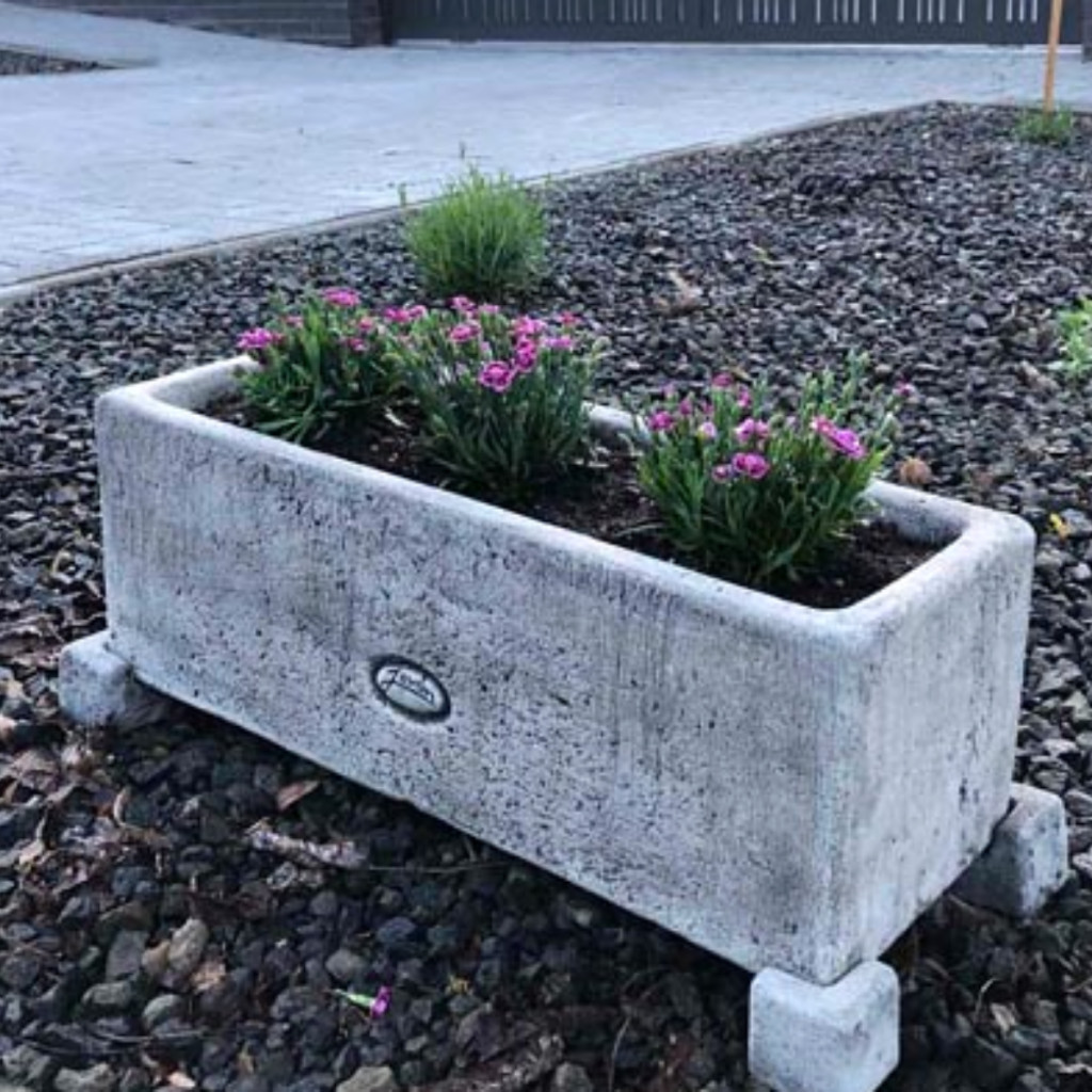 Kő hatású minimál stílusú időjárásálló kerti virágvályú.
