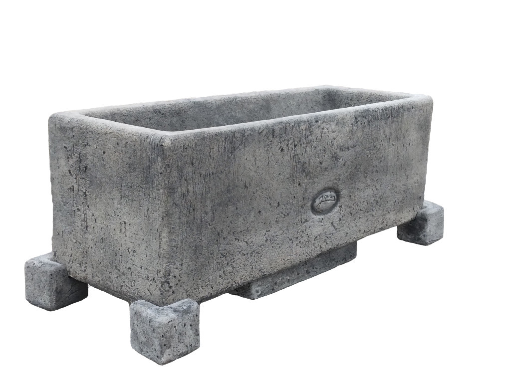 Kő hatású minimál stílusú időjárásálló kerti balkonláda vízgyűjtő tálkával és 4 db lábbal.