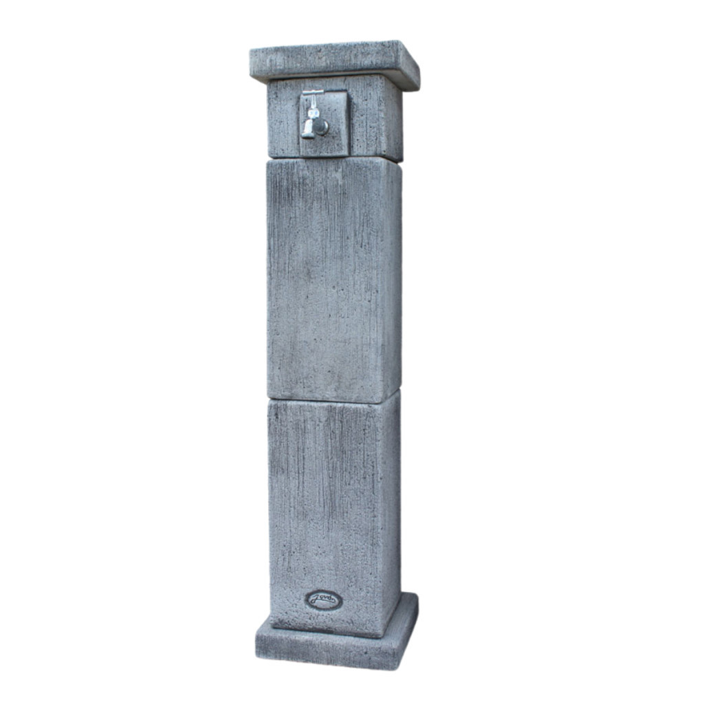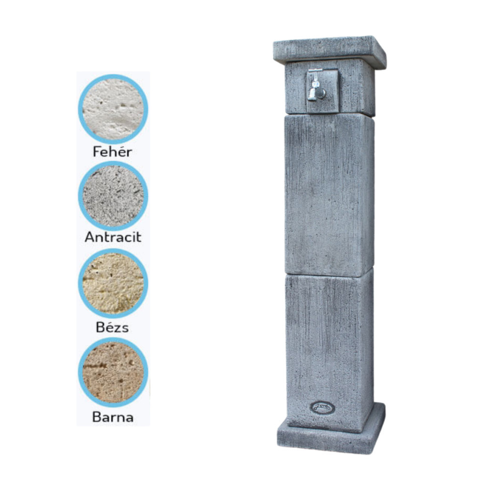 Kő hatású szögletes kútoszlop kifolyó tálca nélkül.