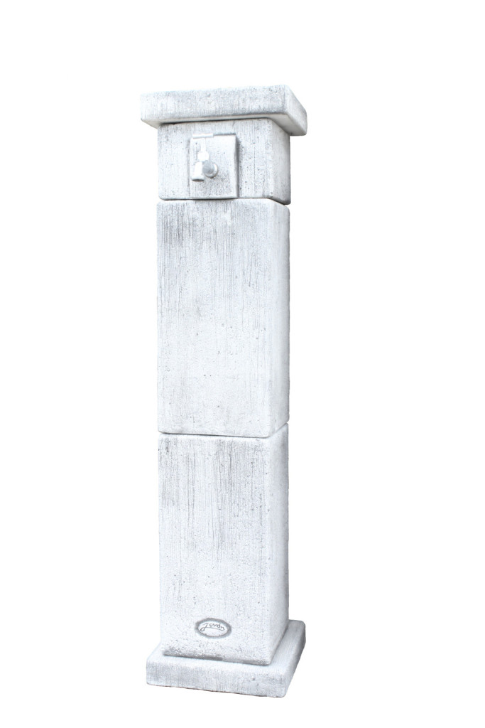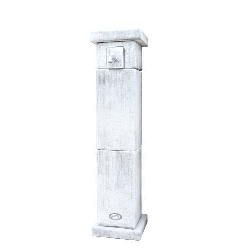 Kő hatású szögletes kútoszlop kifolyó tálca nélkül.