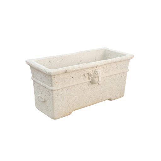 Kő hatású időjárásálló kerti virágvályú Medici fej díszítéssel.