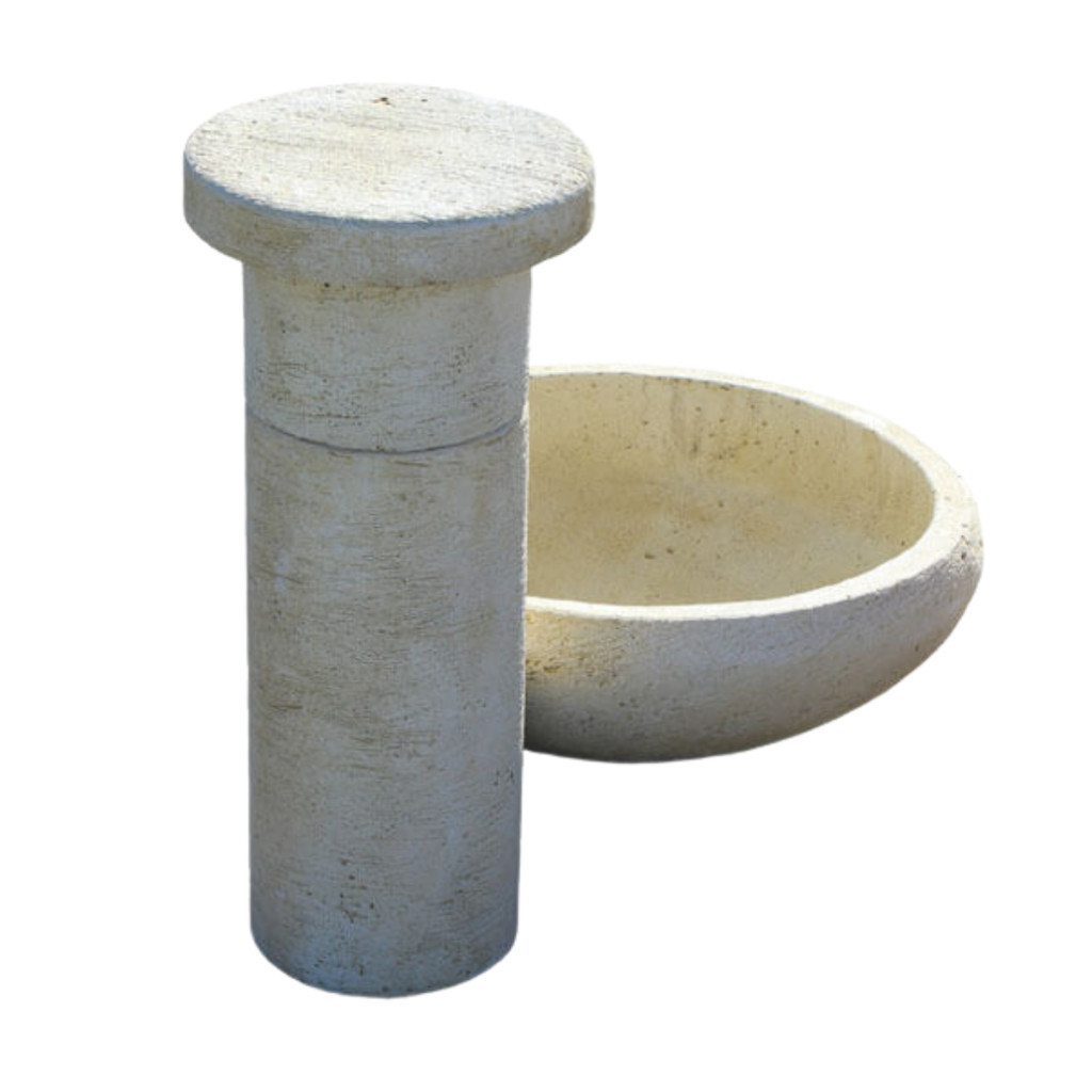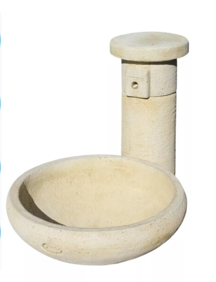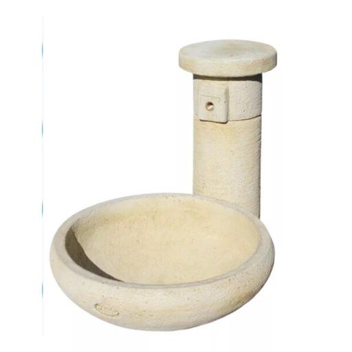 Kő hatású oszlopos kerti kút kifolyó tálcával.