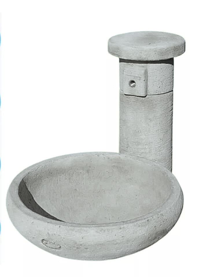 Kő hatású oszlopos kerti kút kifolyó tálcával.