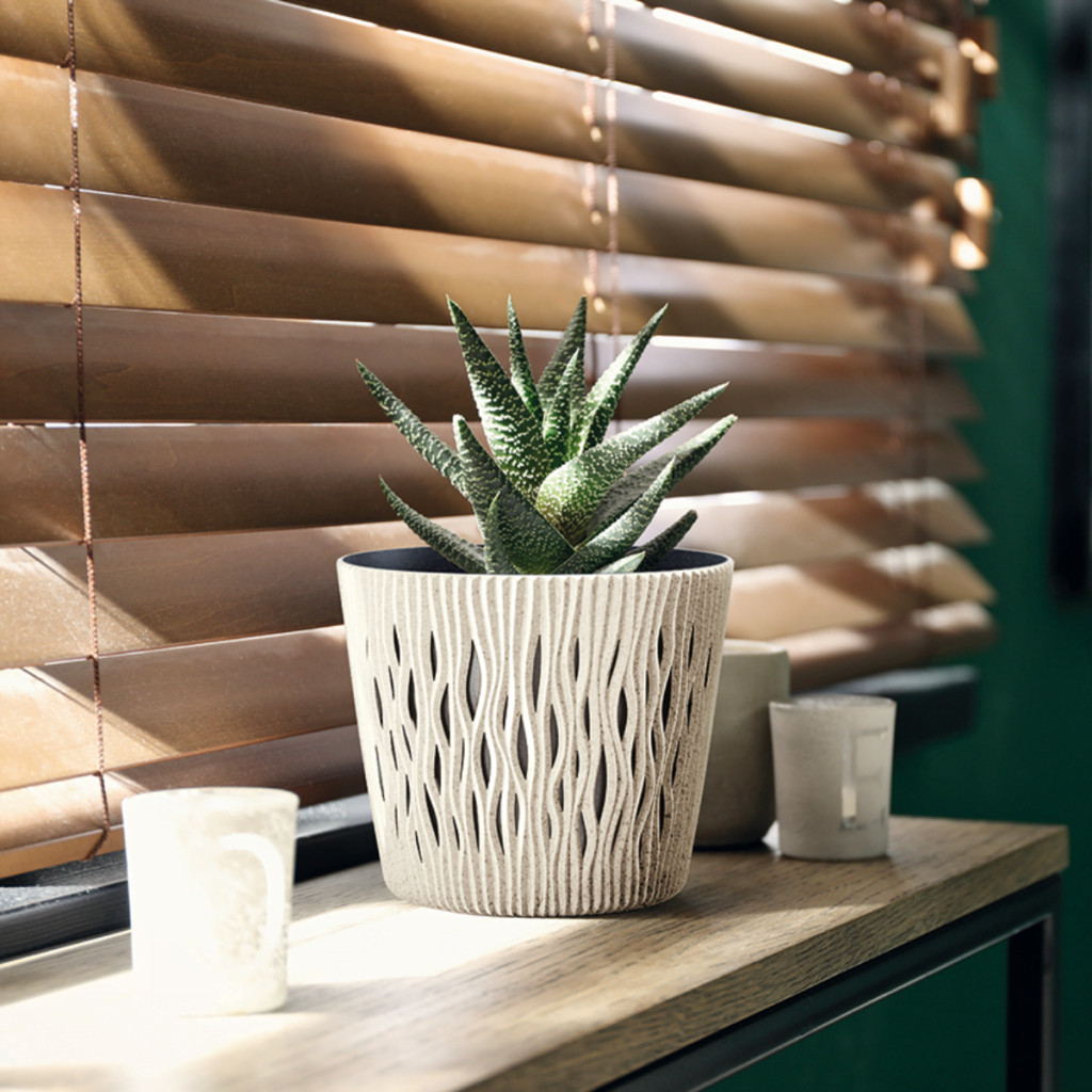 A műanyag kaspó stílusának köszönhetően ideális dekoráció lehet irodákban, teraszokon, vagy akár otthona bármely helyiségében. Az ECO WOOD kollekció 33%-ban természetes fát tartalmaz, ami könnyebb biológiai lebonthatóságot eredményez. Termék paraméterek: Anyag: műanyag Átmérő: 22,5 cm  Magasság: 19,2 cm Térfogat: 5 l  A kaspó többféle színben rendelhető, kosárba helyezés előtt kérjük válassza ki a rendelni kívánt színt!