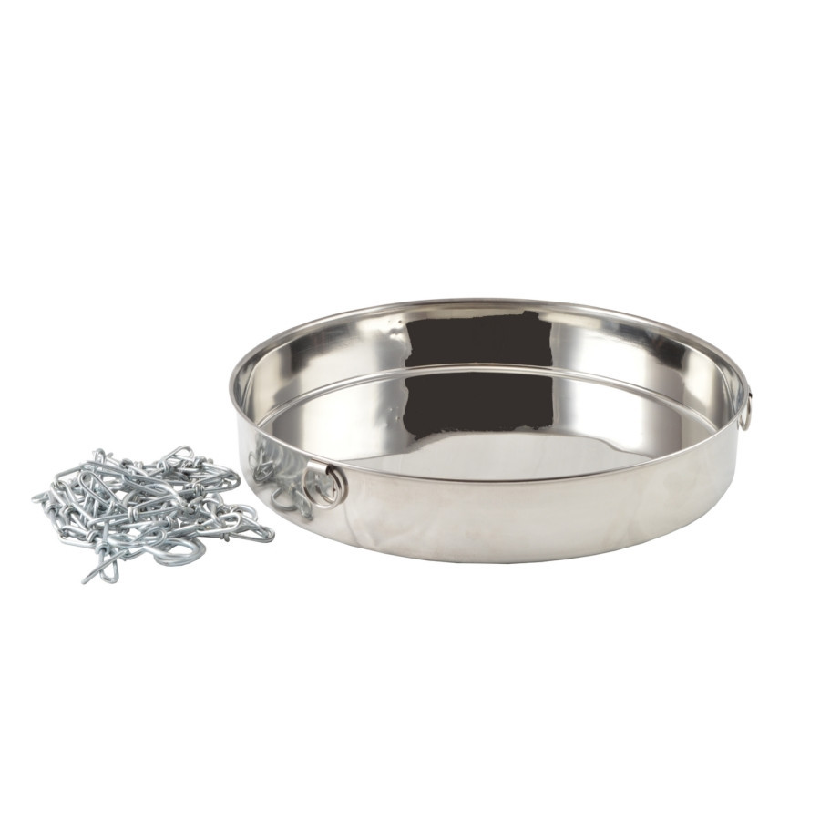 Bográcstartó állványra akasztható rozsdamentes hússütő serpenyő.  Magas pereme praktikus, nagy részben meggátolja a zsírok szétfröccsenését.  Anyaga rozsdamentes acél,  Átmérője 36 cm,  Tartozék függesztő lánccal