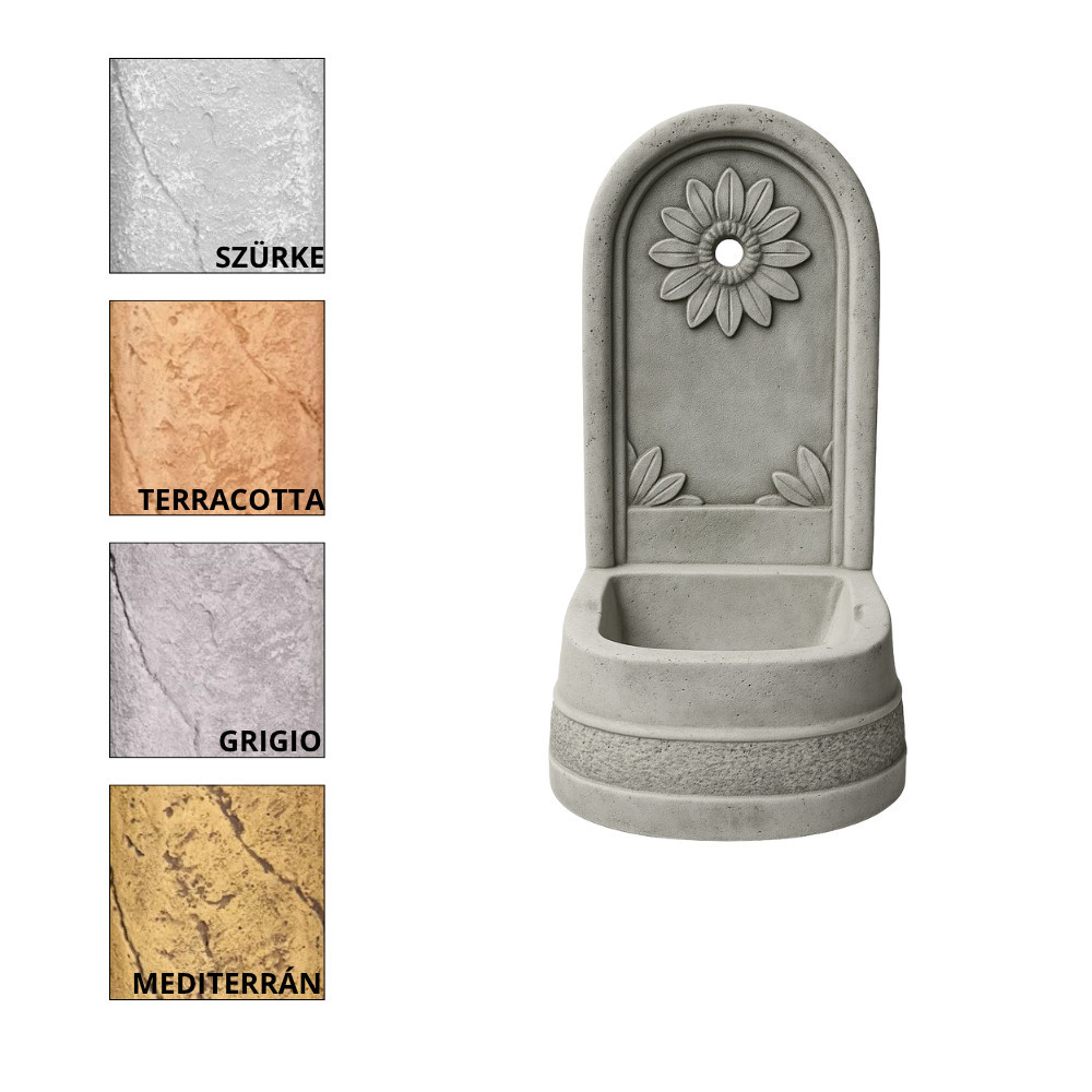 Hozd el kertedbe a mediterrán hangulatot ezzel a fagyálló fali kúttal! Időtálló anyagból készült, így egész évben dísze lehet a kertnek. Klasszikus és elegáns formavilága nemcsak praktikus vízvételi lehetőséget nyújt, hanem stílusos dekorációként is szolgál. Bekötése a háttámla felől a falból történik. Színei természetesek és tartósak. A termék több színben rendelhető, kérjük megjegyzésben feltüntetni a választott színt. Magassága: 90 cm Szélessége: 50 cm Hosszúsága: 46 cm Súly: 87 kg Gyártó: FabroStone Fagyálló Az ár nem tartalmazza a csapot, kérjük a termék rendelésekor figyelembe venni!