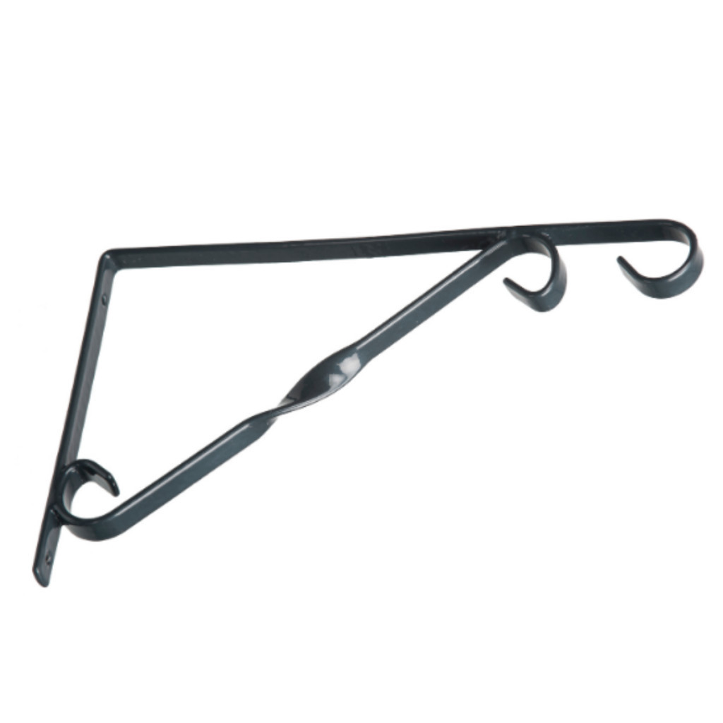 A  zöld fali tartó karral könnyedén függesztheti virágtartóit, hogy virágai ékesíthessék otthonát. Javasolt kültéren teraszokon, erkélyeken alkalmazni.   Termék jellemzők:   Anyaga: Kovácsolt jellegű Magassága: 18,5 cm Hosszúsága: 30 cm. Időjárásálló sötétzöld színű festékkel kezelve.