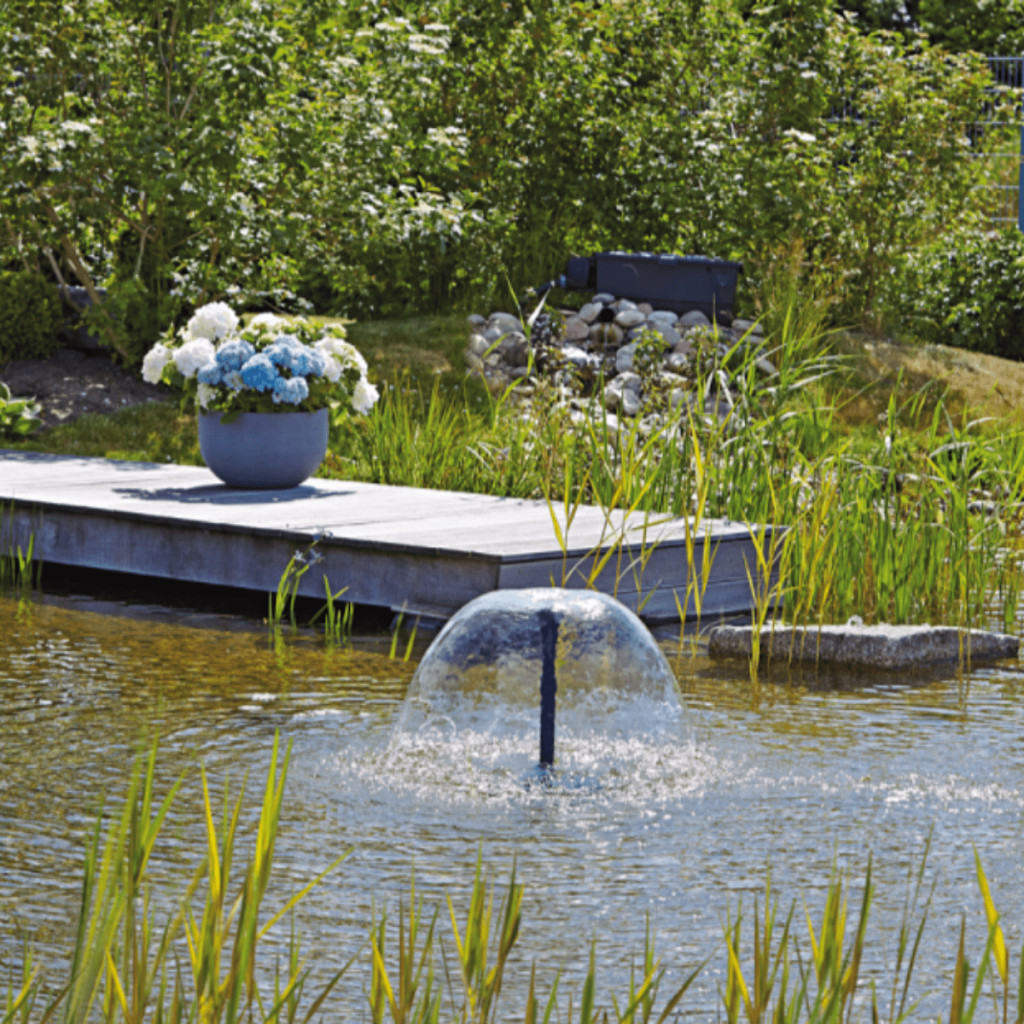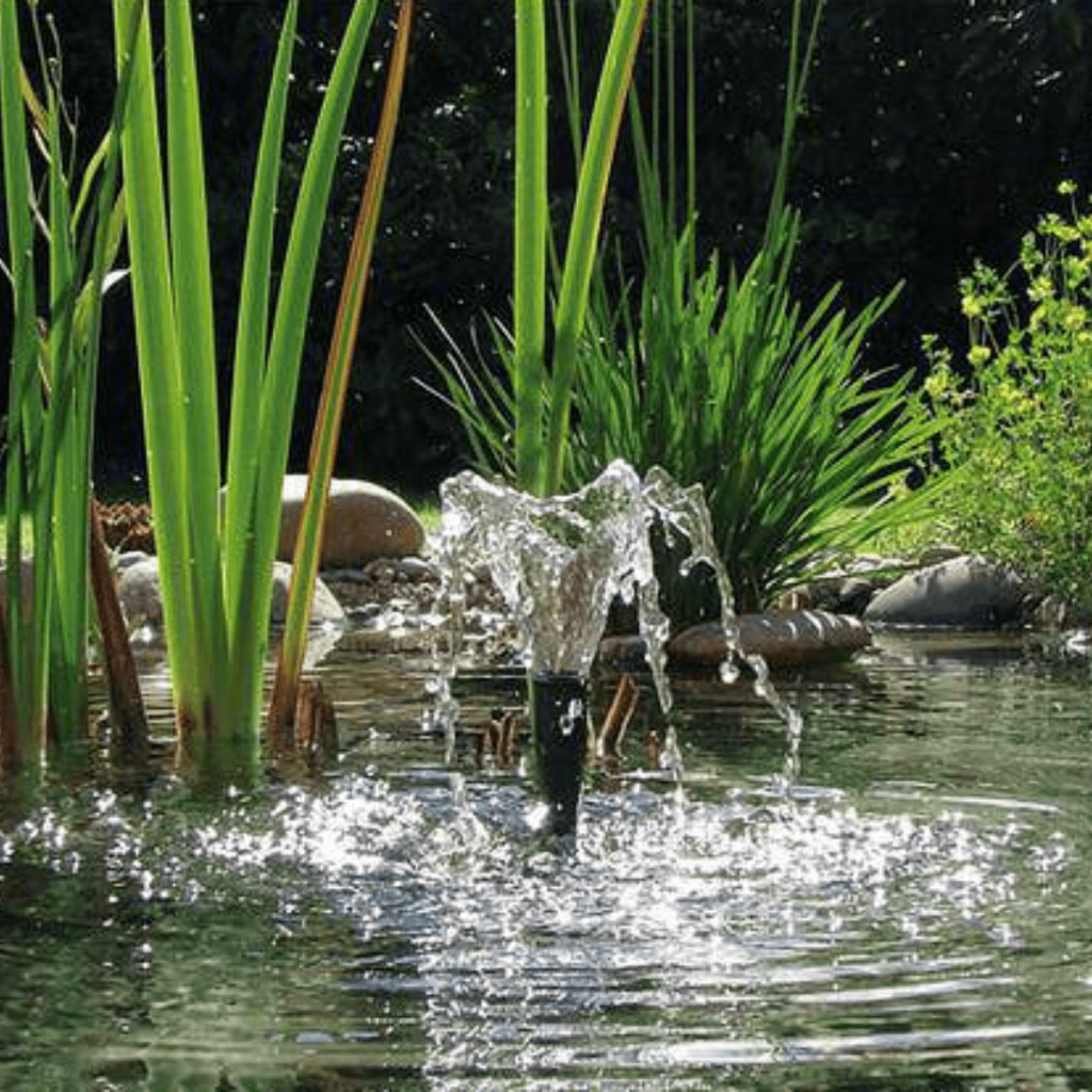 PONTEC PonDuett 5000 Kompakt vízalatti szűrő szökőkútfejjel, akár 3000 literes tavakhoz is alkalmazható (halasítás nélkül számolva). Bio-mechanikus tisztítási fokozatok. A teleszkópos hosszabbítás elfordítható, mely 4 különféle fúvókával rendelkezik. A második kimenet szabályozható. Fokozatos csatlakozó (1/2”, 3/4”, 1”-os), patak üzemeltetéséhez. Tulajdonságok Szökőkút magasság: Vulkán: 100 cm Sugarak: 150 cm vastagság Harang: 15 cm Kehely: 45 cm Teljesítmény: 2500 l/h Nyomás: 1,9 m Hmax feszültség: 230 V / 50 Hz / 25 W Vezeték hosszúsága: 10m