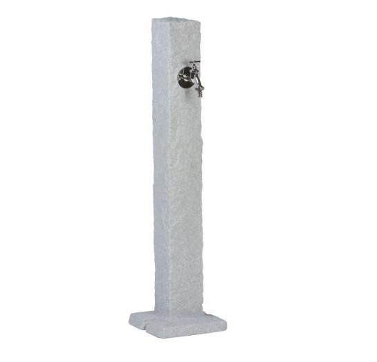 Méret: 98 x 12 x 12 cm  Talapzat mérete: 24 x 24 cm Anyag: Kiváló minőségű műanyag Időjárásálló  Szín: világos szürke, gránit mintával Telepíthető: Szilárd felületre, A vízellátása szabványos tömlőcsatlakozó rendszerekkel történik. Az ár tartalmazza a kerti a fém kerti csapot is!