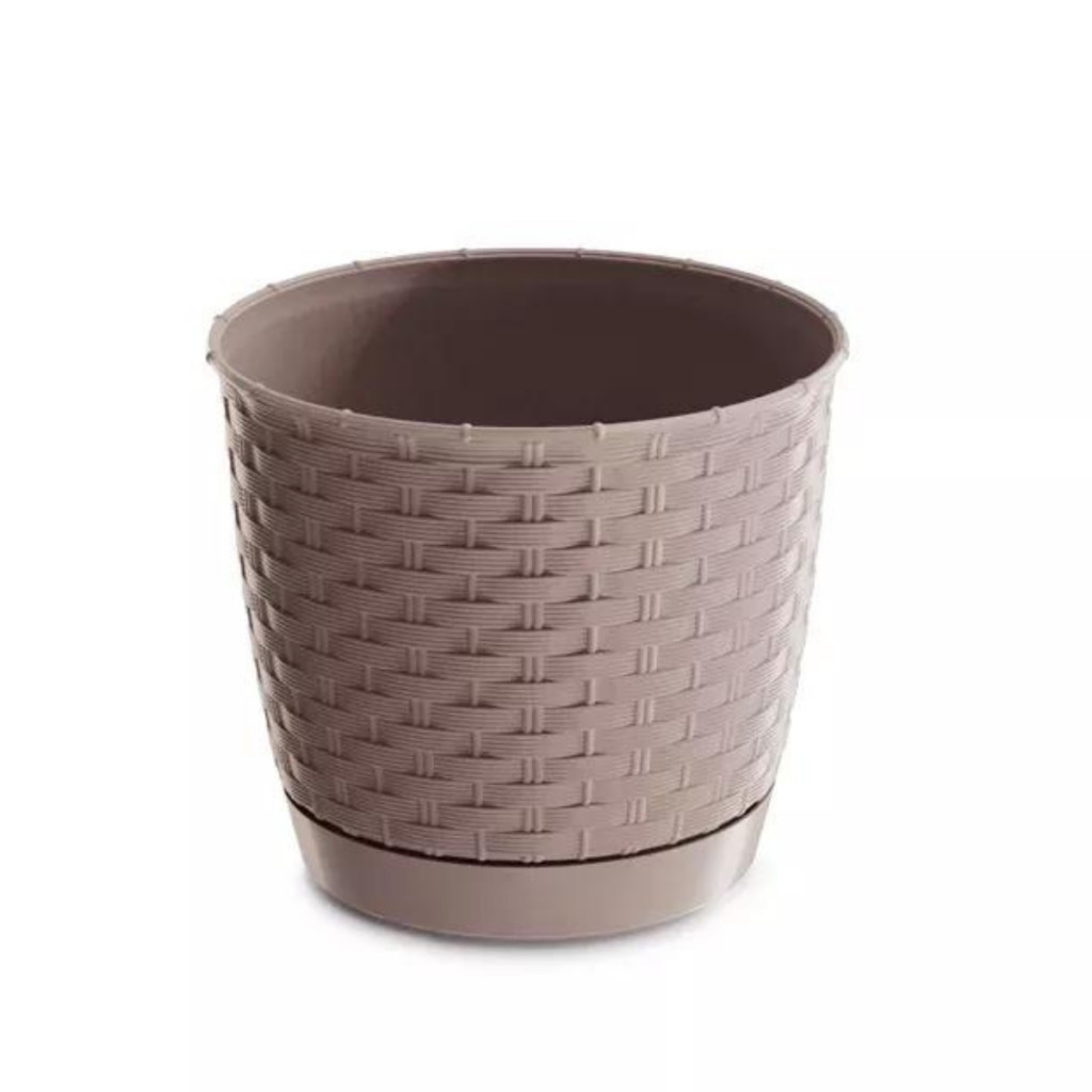 Rattan hatású kaspó alátéttel / Mocca (DRLO250/7529U)
