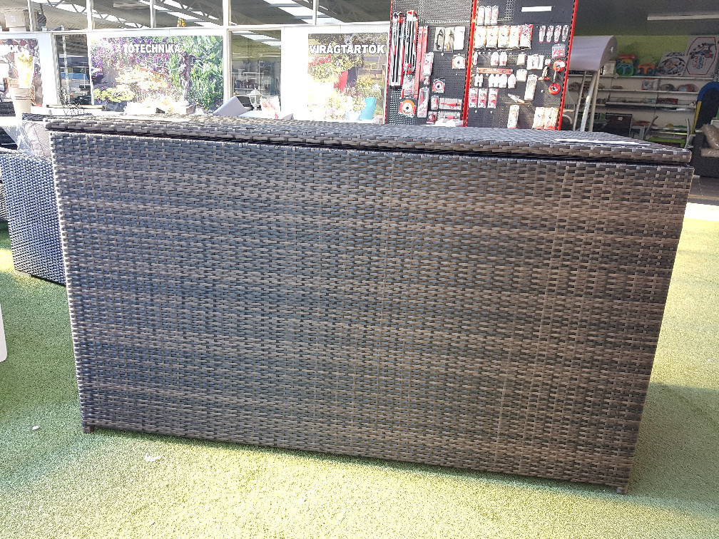 A dekoratív rattan láda lehetővé teszi a kerti bútorokhoz tartozó párnák, plédek  és egyéb tárgyak kényelmes és esztétikus tárolását. A láda anyagának köszönhetően ellenáll az időjárás viszontagságainak, kopásálló, alkalmas a mindennapi szabadtéri használatra.  A párnatartó láda tépőzáras, vízálló betétet tartalmaz, ezáltal kisebb esőzés esetén nem áznak el a benne lévő tárgyai. Figyelem! A láda élettartamának növelése érdekében kérjük egy vízálló takaróval/ponyvával takarja le, megelőzve a nagyobb esőzések általi beázást.