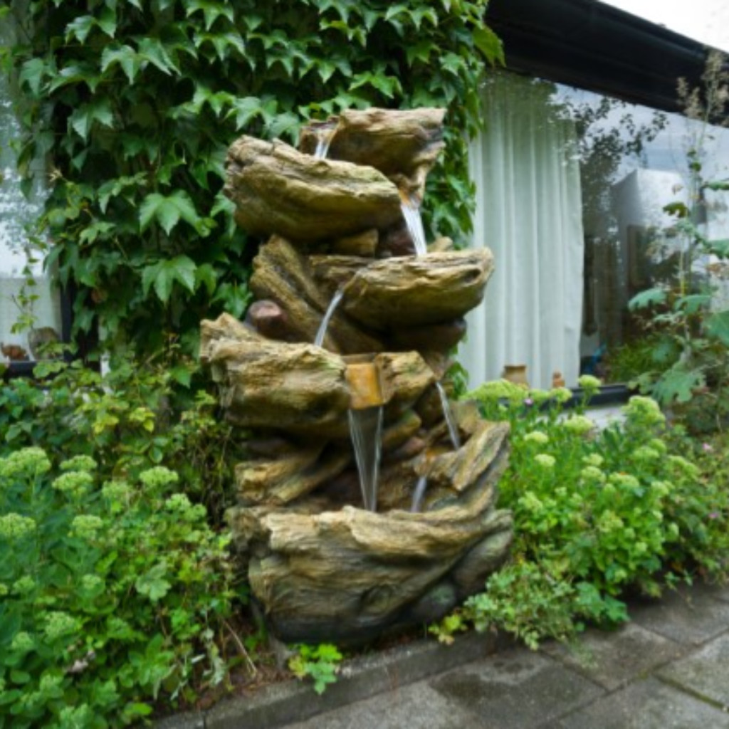 Megjelenése természetközeli farönköket illetve sziklákat formáló csobogó! A led világitásnak köszönhetően az esti órákban különleges látványt illetve élményt biztosít Nincs Szükség külön víztartályra mert a csobogó szett tartalmazza a vizet amit egy 1600l/h szivattyú forgat! A párolgás miatt a vizet néha pótolni kell! Tartozékok -1600l/h szivattyú - Led világítás 4 led gyűrűvel  -Csatlakozások illetve csobogó felépítmény Mérete 134x77x55cm Anyaga Polyresin Elhelyezését kültérben javasoljuk