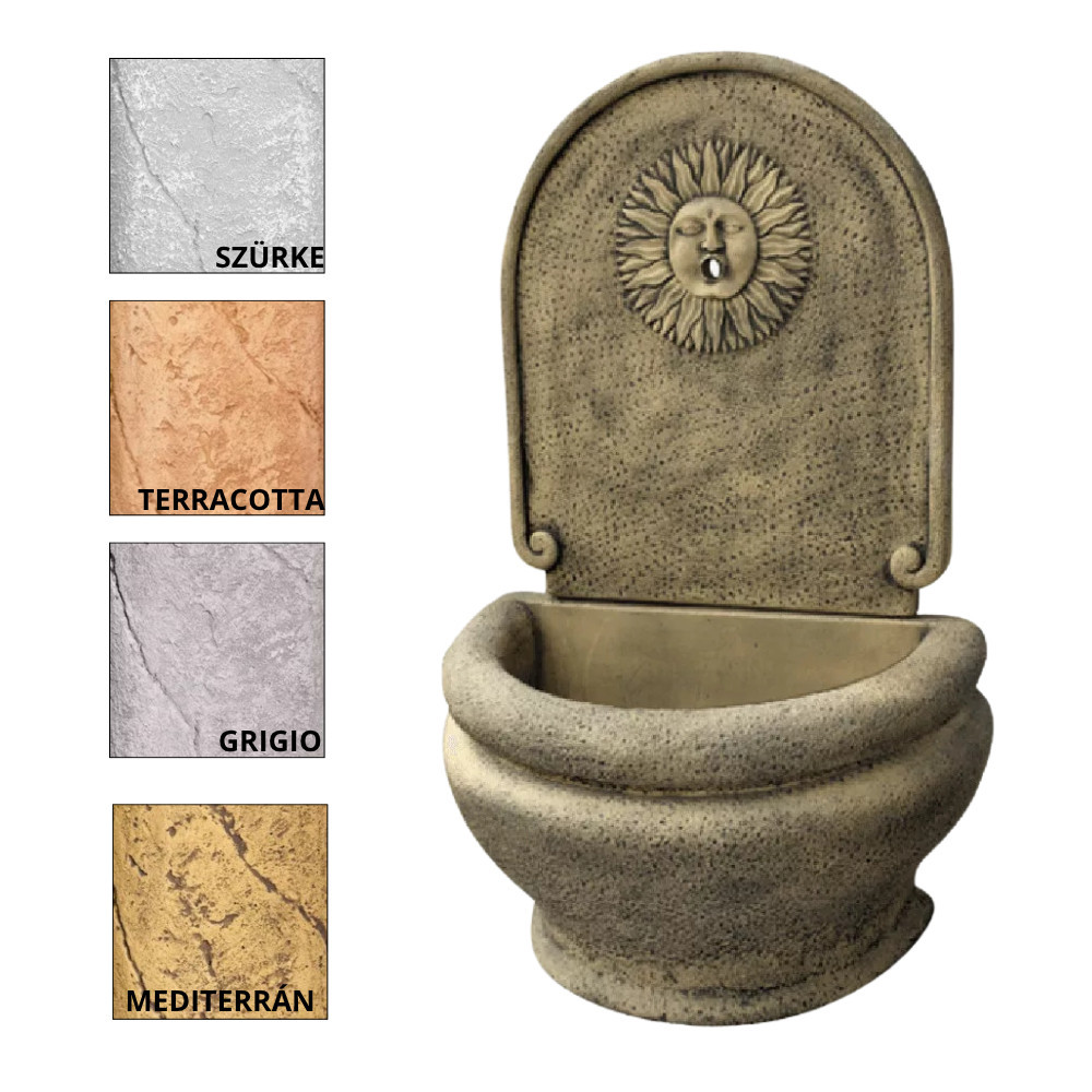 Bekötése a háttámla felől a falból történik. Színei természetesek és tartósak. A termék több színben rendelhető, kérjük megjegyzésben feltüntetni a választott színt. Magassága: 125 cm Szélessége: 85 cm Súly:178 kg Gyártó: FabroStone Fagyálló Az ár nem tartalmazza a csapot, kérjük a termék rendelésekor figyelembe venni!
