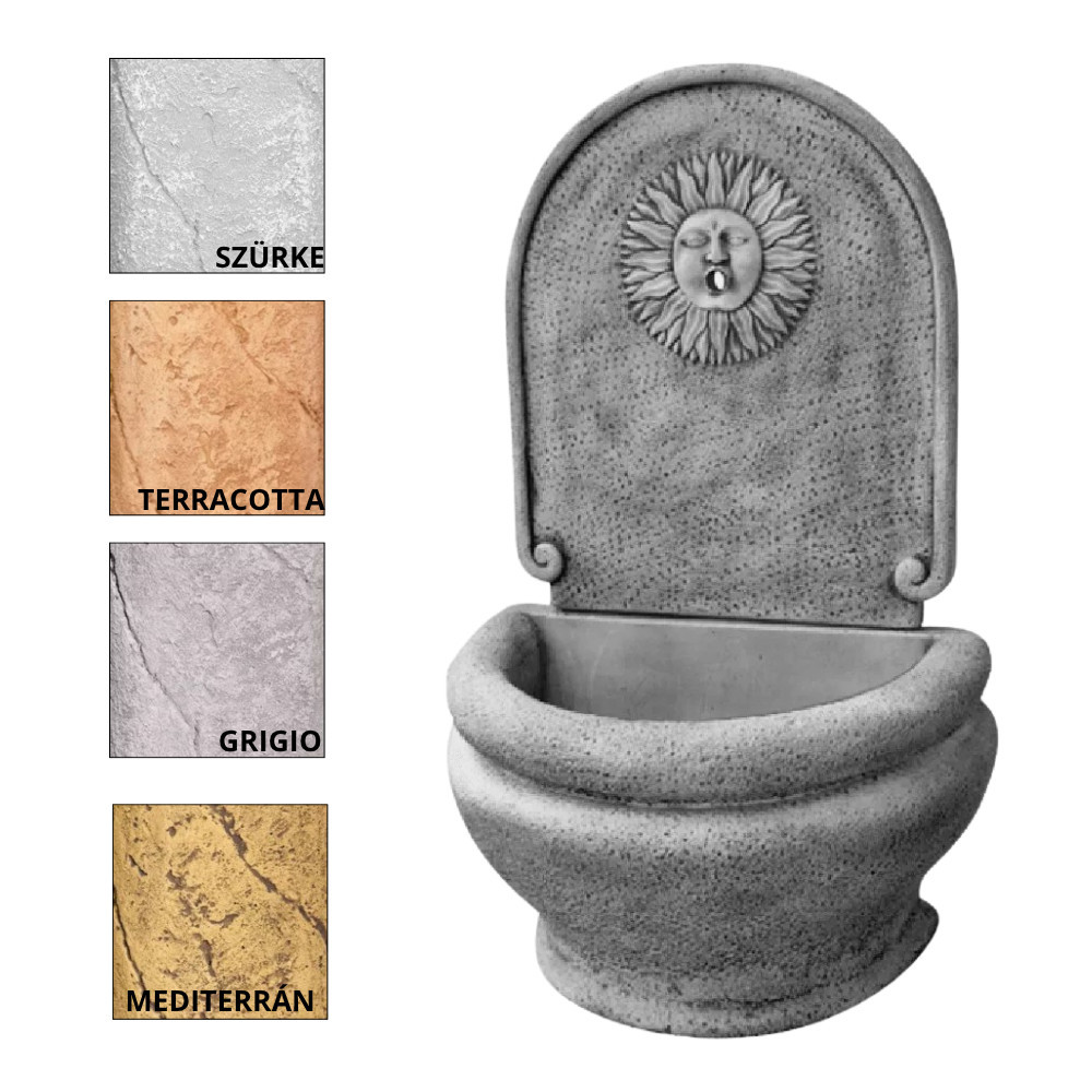 Bekötése a háttámla felől a falból történik. Színei természetesek és tartósak. A termék több színben rendelhető, kérjük megjegyzésben feltüntetni a választott színt. Magassága: 125 cm Szélessége: 85 cm Súly:178 kg Gyártó: FabroStone Fagyálló Az ár nem tartalmazza a csapot, kérjük a termék rendelésekor figyelembe venni!
