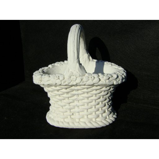 Fehér műkőből készült, anyagában színezett kerti virágtartó. Magassága: 40 cm Hosszúsága: 45 cm Kültéri Időjárásálló