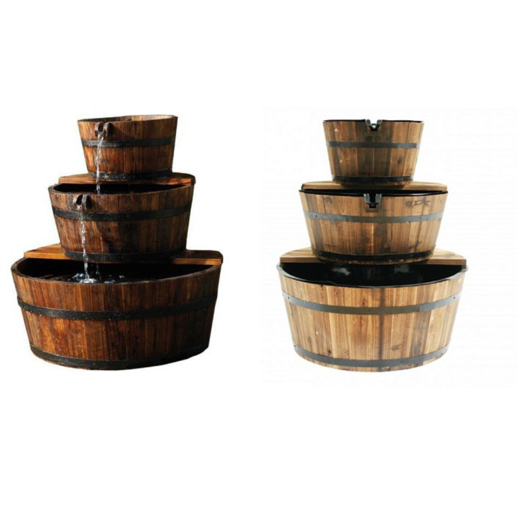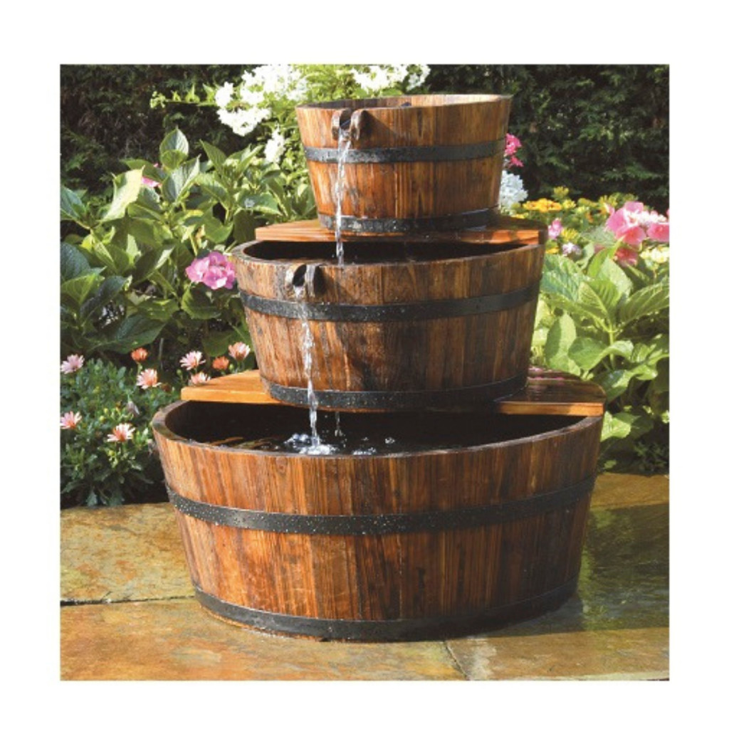 Kerti csobogó szett Edinburgh Rusztikus kertek stílusos kiegészítője az EDINBURGH csobogó Szinte minden típusú kertbe jól illik, különösen virágoskertek közelében mutat jól.  Komplett szett, mely mindent tartalmaz, ami a csobogó azonnali használatba vételéhez szükséges. Összeállításához a helyszín kiválasztása és előkészítése után csupán egy-két óra szükséges. A csobogó elhelyezhető teraszon vagy más, kövezett, járólapozott, betonozott vagy faborítású felületen.  Önálló egységet alkot, nincs szükség semmi másra, mint egy hálózati csatlakozó helyre a felállításához. Adatok: A tálak méretei: 32, 46 és 59 cm átmérő A csobogó magassága: 72 cm Anyaga: Fa edények, műanyag belsővel Tartozékok: 600 l/H teljesítményű szivattyú Csatlakozók Csobogó felépítmény ellemzők: Elhelyezhető felszín felett (teraszon, lépcsőn, járdán) Virágágyások közelében különösen kellemes látvány