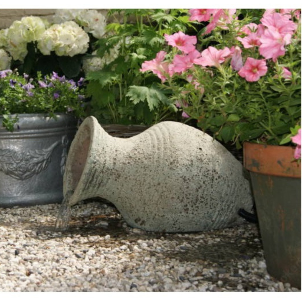Ubbink Acqua Arte Larissa csobogó szett! Ez az Ubbink Acqua Arte Larissa 1308305 egy komplett készlet mosdókagylóval, fedőlappal, szivattyúval és összekötő anyaggal. A kerámia amfora foltos fehér antik külsejű, amely emlékeztet a klasszikus időkre. Ideális a kertbe vagy a teraszra. PARAMÉTEREK:   Anyaga: kerámia Kerámia amfora foltos fehér antik külsővel A teljes szett mosdókagylóval, fedőlappal, szivattyúval és összekötő anyaggal Stílus: Larissa vízesés Teljes méret: 30 x 53 x 31 cm (Ma x Ho x Szé)