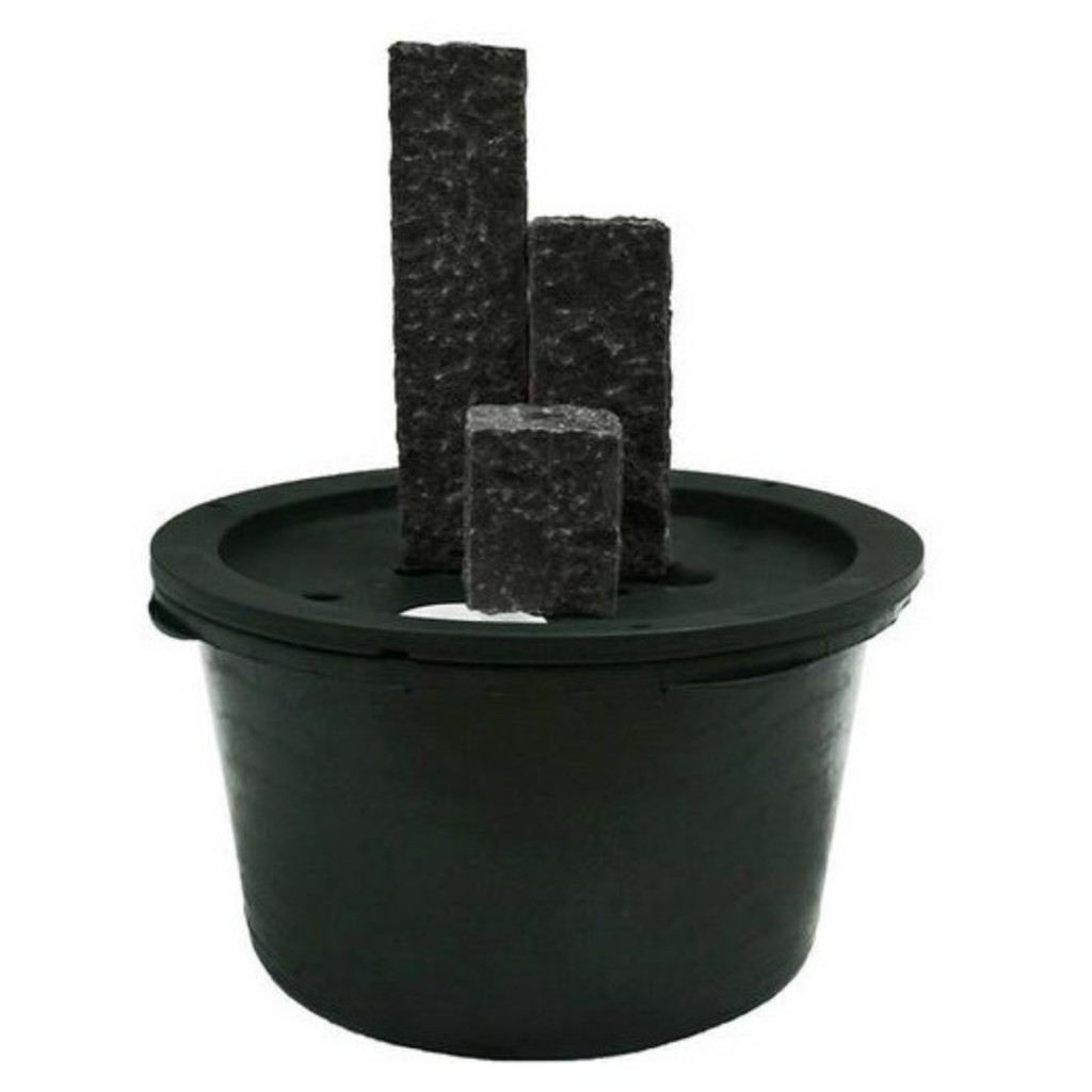 Modern hangulatú csobogó kertbe, teraszra vagy télikertbe. Gránitból készült, sötétszürke színű hasábok, LED világítással. Kiválóan illeszkedik a legtöbb ház stílusához, teraszához, kertjéhez. A hasábok tetején elhelyezett LED világítás mellett érkezik a víz a hasábok tetejére, ott pár centis emelkedés után folyik vissza a hasábok közepén. A csobogó finom hangja nagyon kellemes hangulatot varázsol a kertbe. Elhelyezhető földbe süllyesztve vagy felszín felett. Részei: 36 cm magas, 68 cm átmérőjű 90 liter űrtartalmú csobogó-medence, erre illeszkedő fedőrács, 1600 l/h teljesítményű szivattyú, 15+30+45 cm magas, 12x12 cm oldalhosszúságú hasáb alakú csobogó-felépítmény, 3 db LED világítás, összekötő tömlő, csatlakozók. A csobogó összeszerelése egyszerű, és a csomagban találhatókon kívül más alkatrész beszerzését nem igényli. Összeállítás és vízzel történő feltöltés után azonnal ráköthető a hálózatra, és használatba vehető. Felhasználási területek: Kertben, teraszon, télikertben történő elhelyezésre. Jellemzők: Egy csomagban minden, ami a csobogó felállításához szükséges, Gránitból készült felépítmény, Modern megjelenés, Elhelyezhető földbe süllyesztve és felszín felett egyaránt, Szinte minden típusú házhoz és ezek kertjébe kiválóan illeszkedik, A hasábok sötétszürke színűek, mindegyik tetején 1 db LED világítással. Adatok: Csobogótest: 15+30+45 cm magas, egyenként 12x12 cm oldalméretű hasábok, Medence: átmérő: 68 cm, magasság: 36 cm, űrtartalom: 90 liter, Szivattyú: 1600 l/h teljesítmény.
