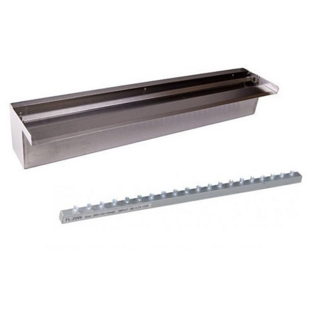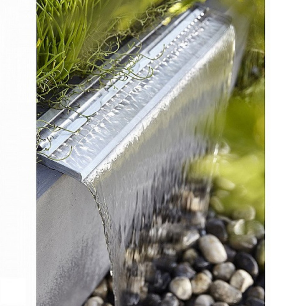 A Ubbink Niagara szögletes kialakítású, Inox anyagból készült vízesés elem, LED világítással. A Niagara vízesés elemet téglából, fából vagy más építőanyagból elkészített falba szerelheti be. Ha nem kerti tó mellé helyezzük a vízesés elemet gondoskodni kell egy műanyag medencéről, amelyből a szivattyú dolgozik, a vízesés elem működéséhez elegendő egy szivattyút megvásárolni. A szivattyú mérete mindig attól függ, hogy milyen magasra kerül a vízesés elem (pl.: 60 cm széles, max 1 m magasba elhelyezett vízesés elemhez 3900 l/h teljesítményű szivattyú szükséges).  Vízesés elem mérete: 10 x 60 x 12,5 cm  Csatlakozója: 1" Anyaga: Inox, rozsdamentes acél  Világítása: 35 db LED-del szerelt égősor  A LED világításhoz szükséges trafó a csomag része  Trafó: 230 V AC/ 12 V AC - 50 Hz